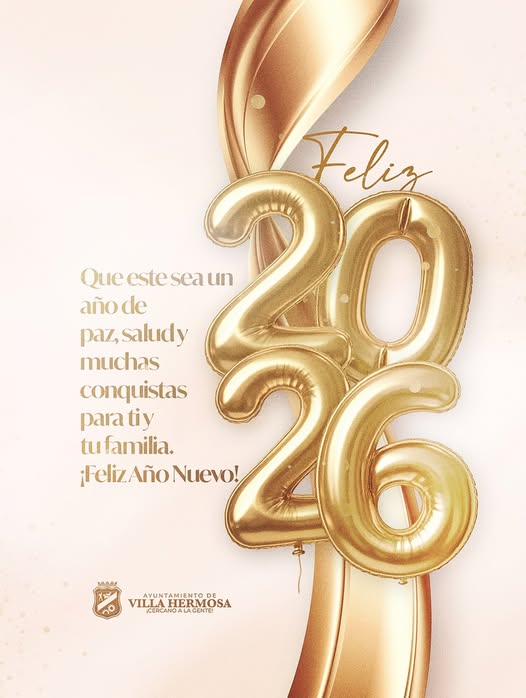 Con la llegada del nuevo año, el Ayuntamiento de Villa Hermosa, encabezado por su gestión municipal, extiende un cálido y afectuoso saludo a todos los residentes del municipio, deseándoles un 2026 lleno de salud, paz y prosperidad.